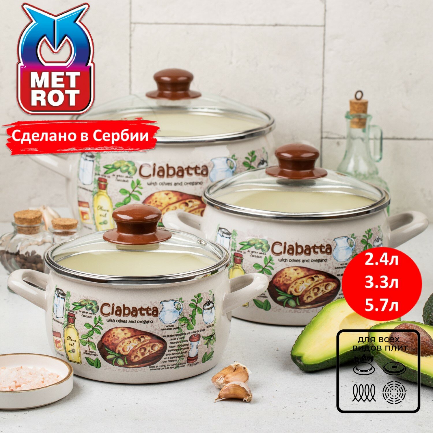 Набор посуды METROT Чиабатта (2,4;3,3;5,7л).