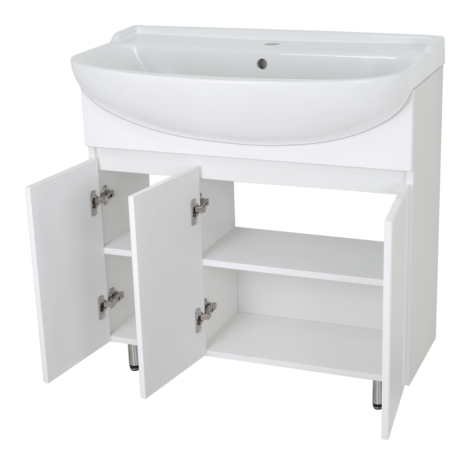 Марта -100 Тумба напольная белая эмаль (глянец) / раковина