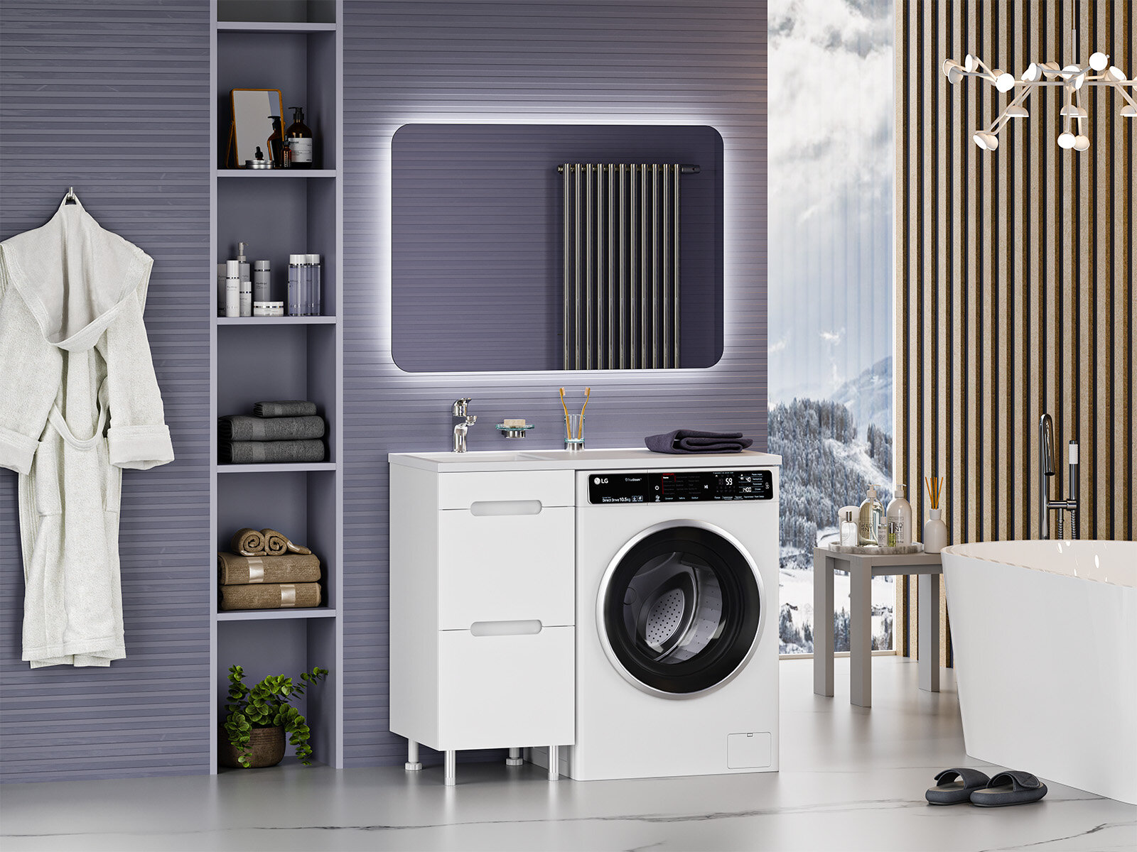 Фостер - 55 Тумба подвесная с 2 ящ. под стиральную машину, белая / раковина правая