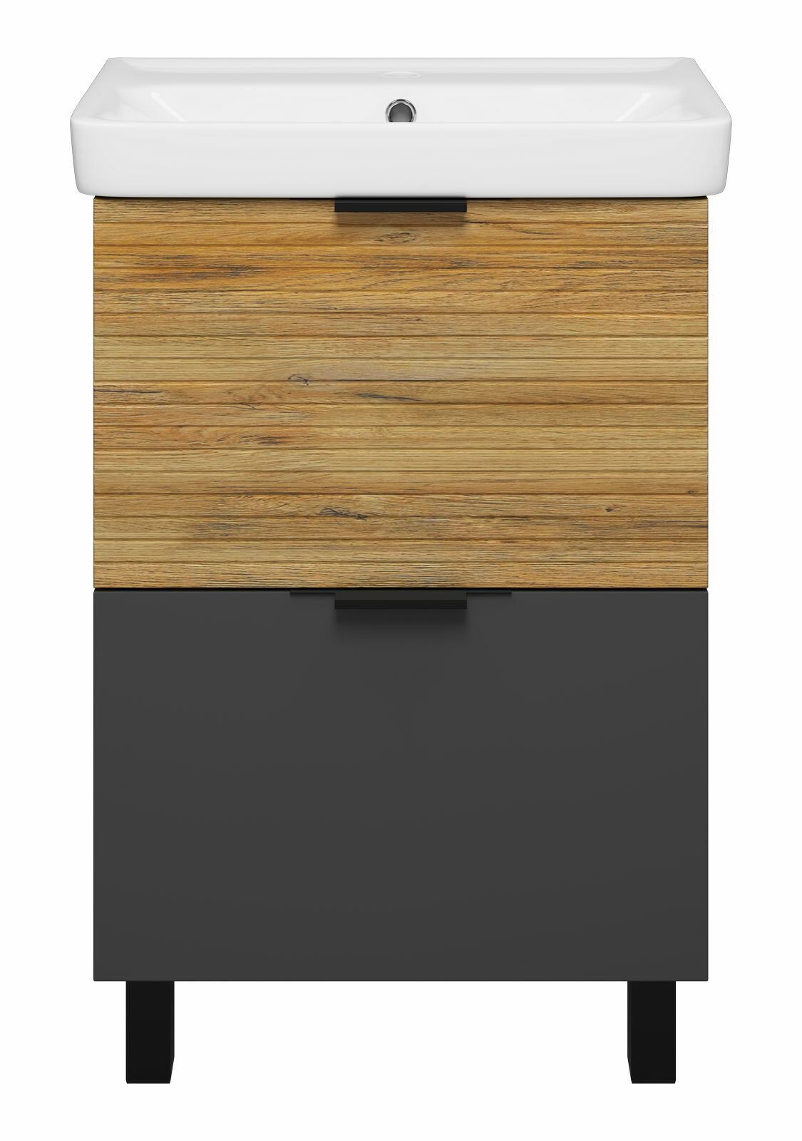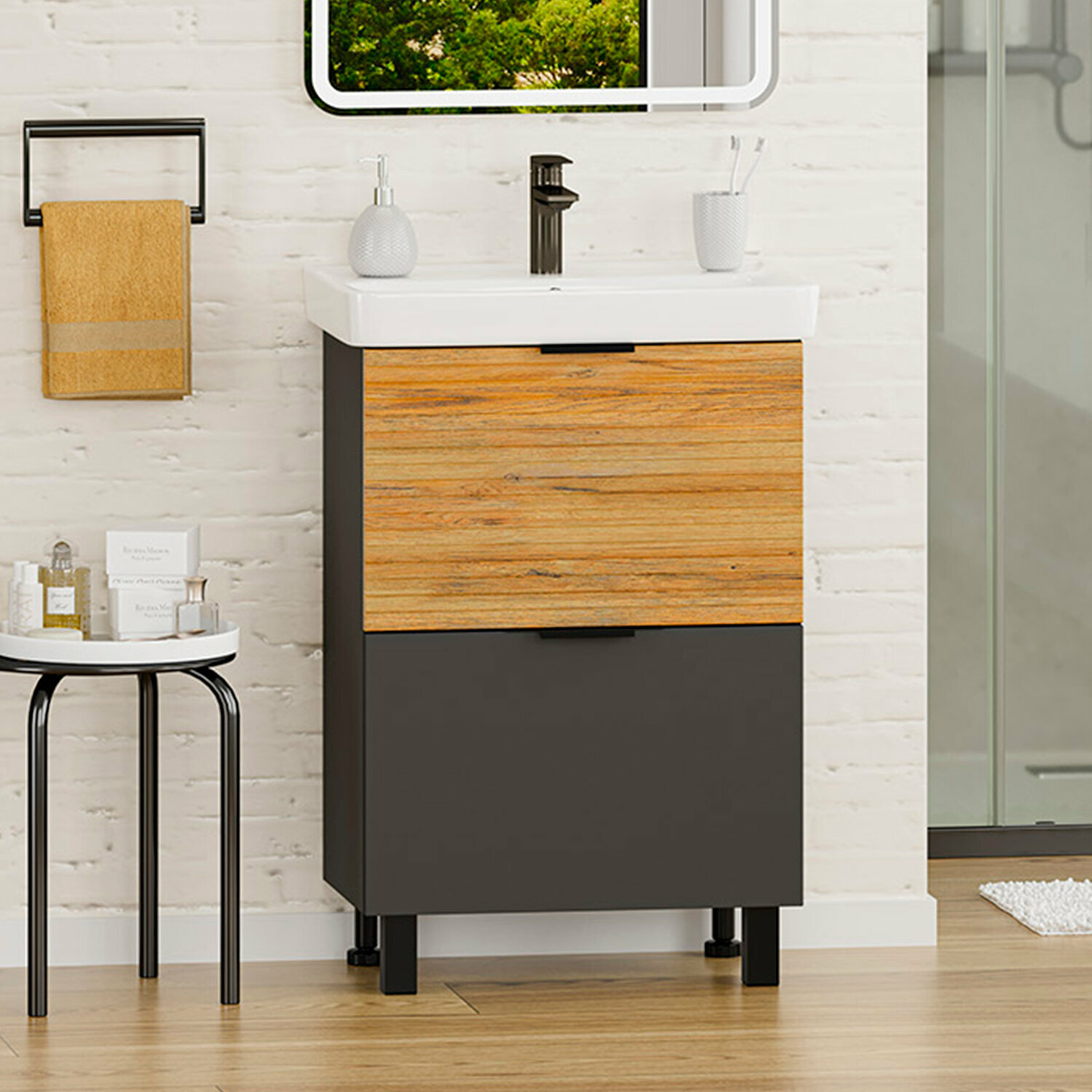 Тумба под раковину Misty Форест Э-Фор-09050-0219-2Я 44,4 см, подвесная, дуб вотан/антрацит матовый