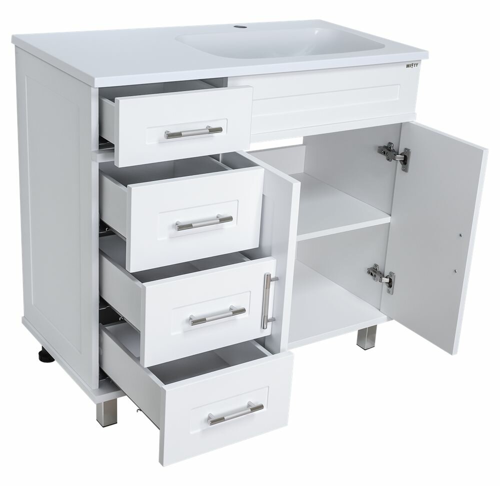 Тумба с раковиной Misty София 100 с 6 ящиков, напольная, белая