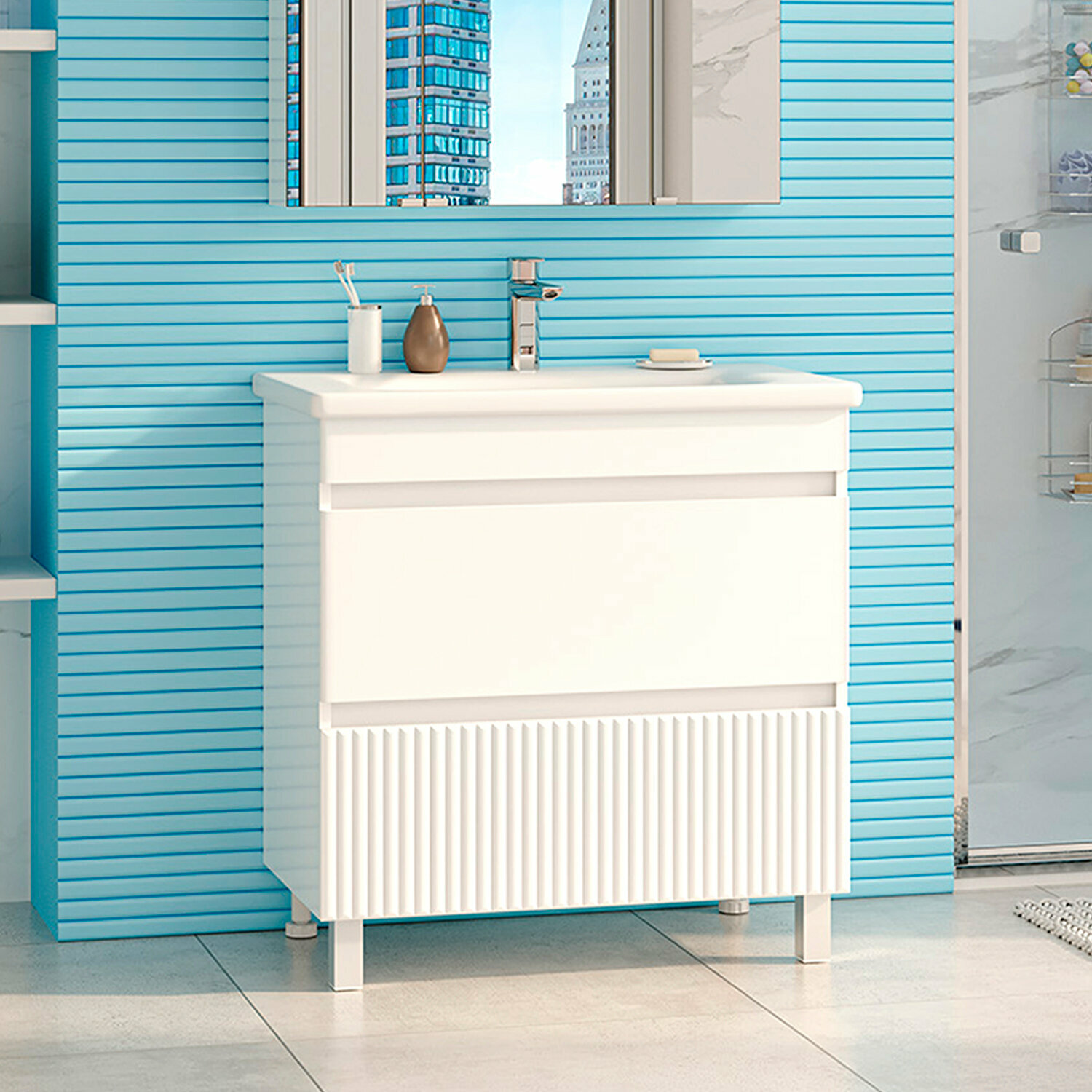 Тумба под раковину в ванную Flamenco, Фламенко 504, белая, 47 х 28.2 x 81 см мебель для ванной