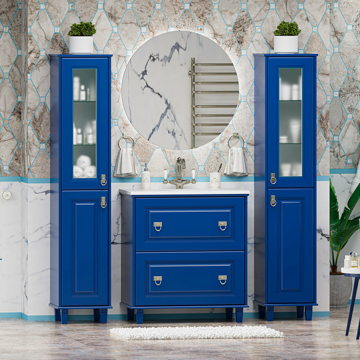 Купить Версаль - 80 Тумба с 2 ящ. синяя матовая / раковина