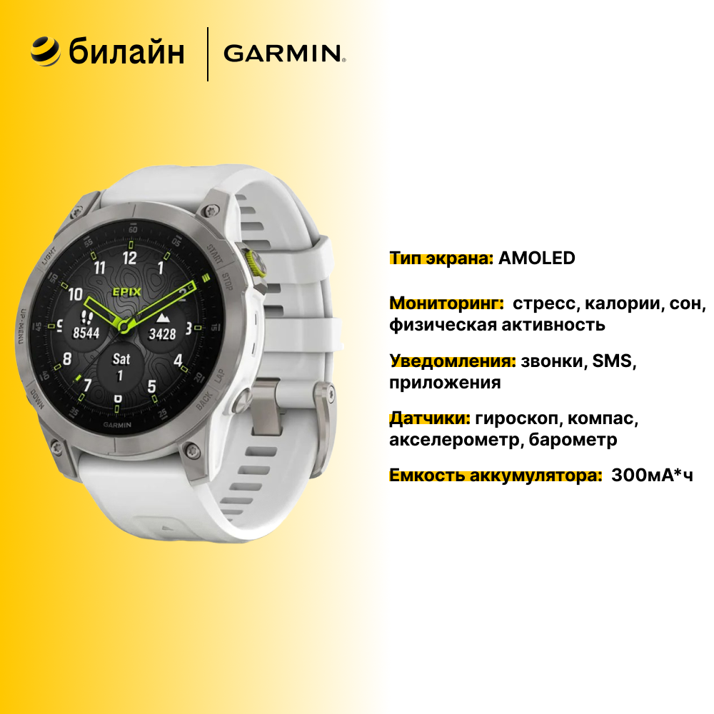 Смарт-часы Garmin EPIX (Gen 2) Sapphire титановый белый (Европейская версия, меню на Русском)