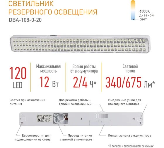 Аварийный светильник DBA-108-0-20 непостоянный 120LED 4ч IP20, ЭРА Б0051842 (1 шт.)