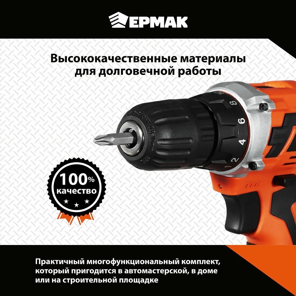 Набор инструментов ермак "Профи" + шуруповерт 12В, 45 предметов
