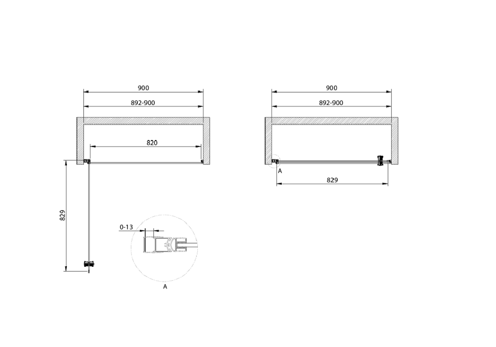 Дверь для душевой кабины в нишу Cezares Eco O-B-1-90-C-NERO стекло прозрачное