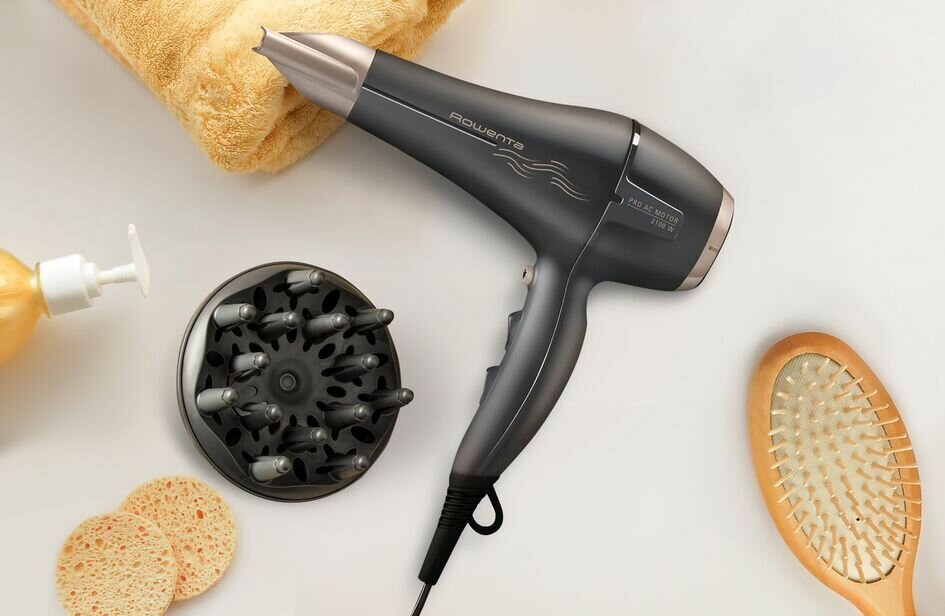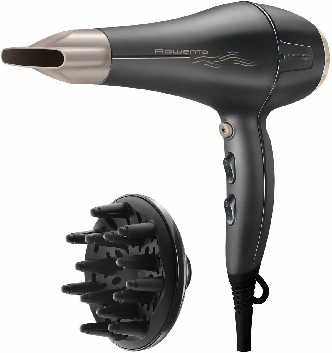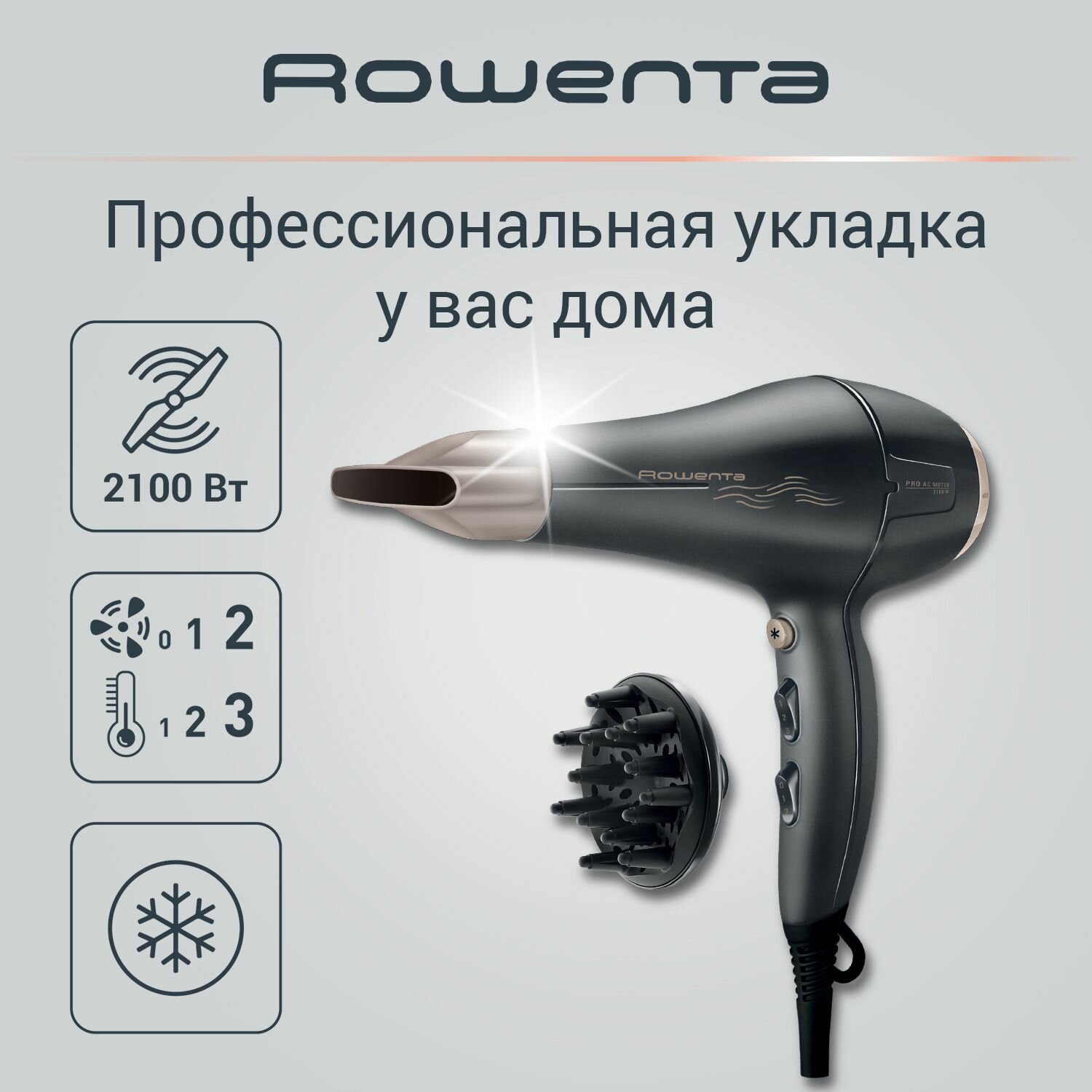 Фен для волос Rowenta Signature Pro Dune CV7827F0, с диффузором для волос, быстро сушит волосы, черный