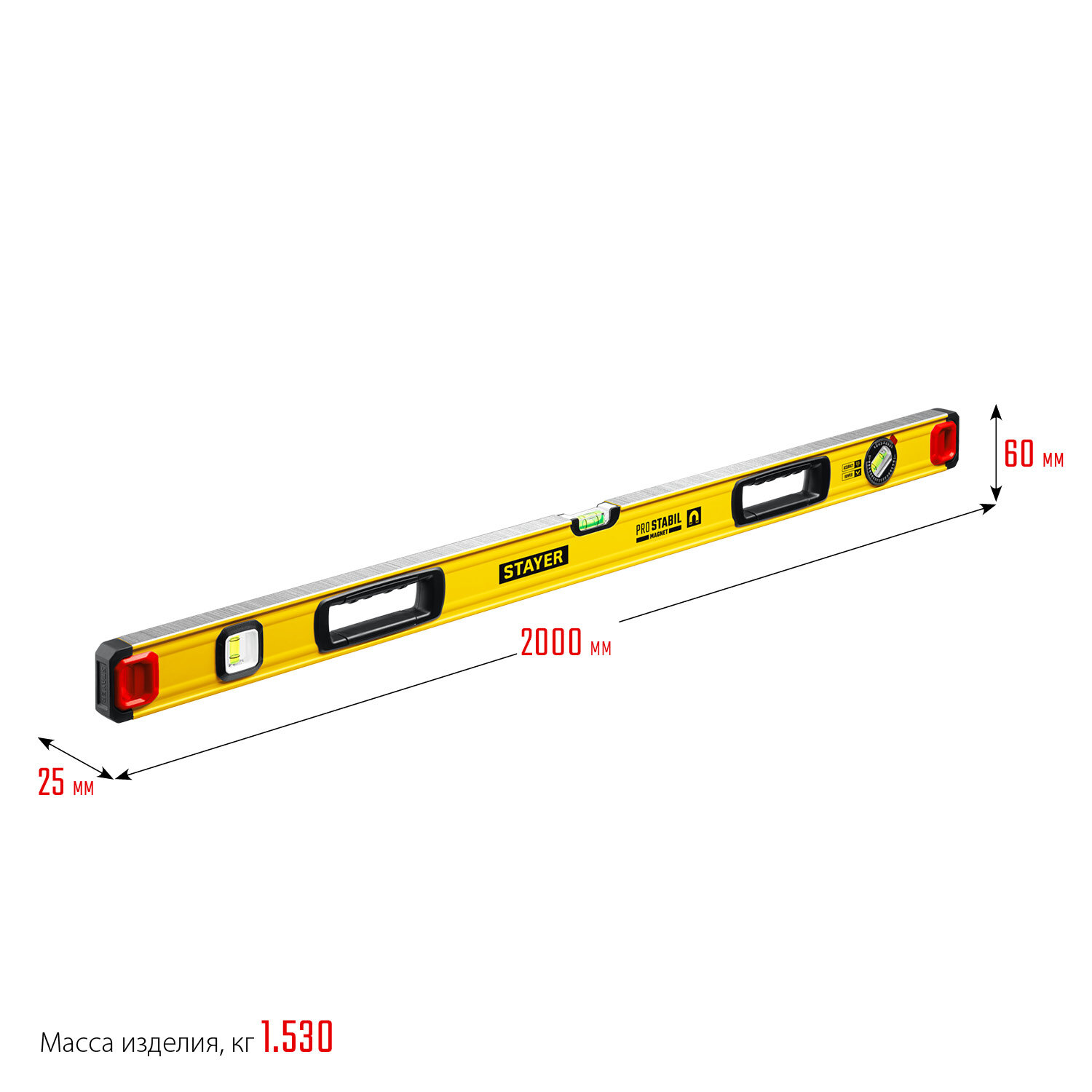 Уровень магнитный PRO STABIL MAGNET STAYER 800 мм, 3 глазка, точность 0.5 мм/м