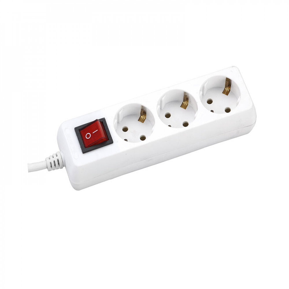 Удлинитель General с заземлением и выключателем, 3 гнезда, 10A, 2200Вт, белый, 5 метров (3х0,75мм) (GES-10-3x075-3-5m-S)