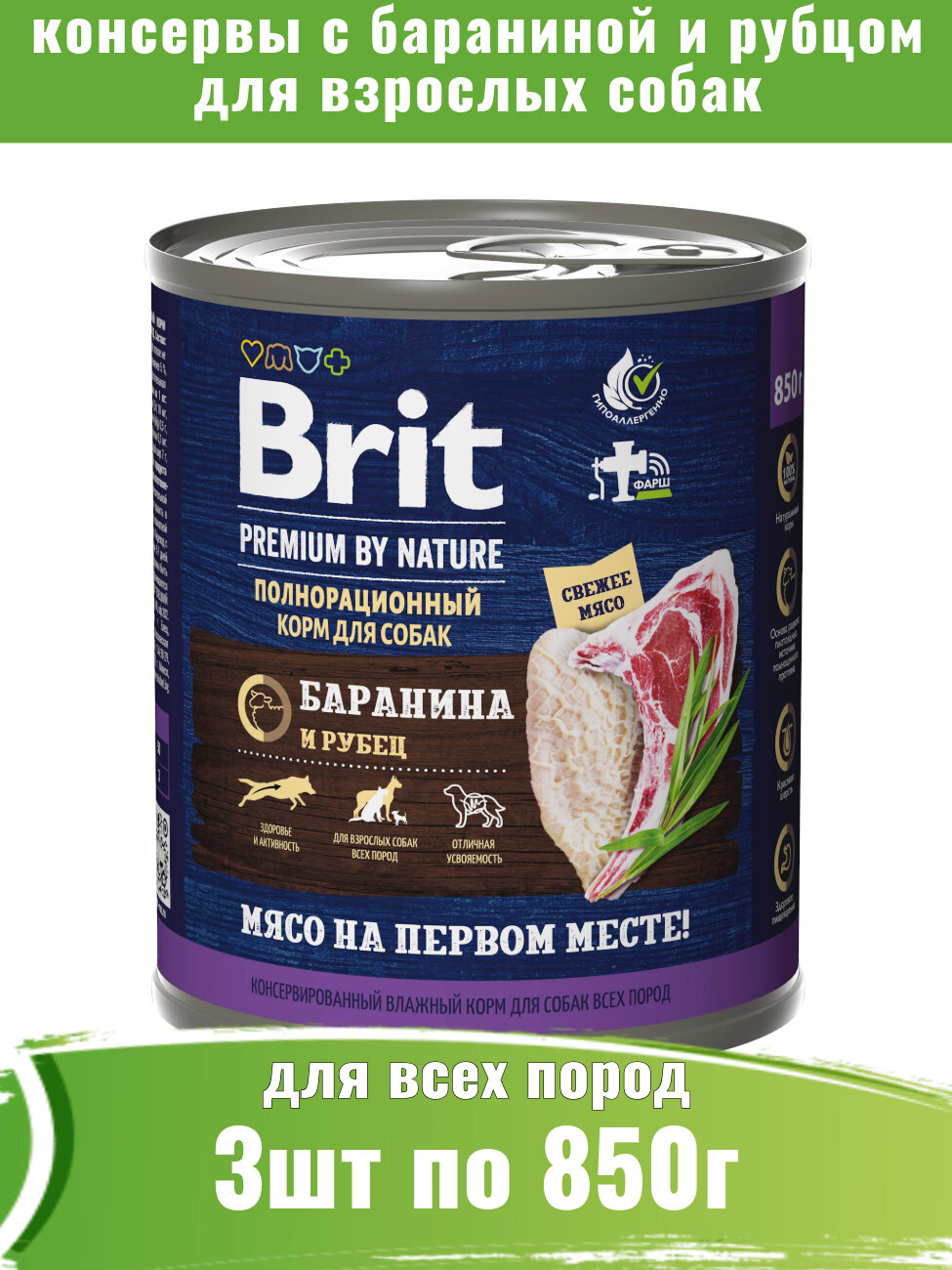 Brit Premium 3шт по 850г с бараниной с рубцом консервы для взрослых собак всех пород