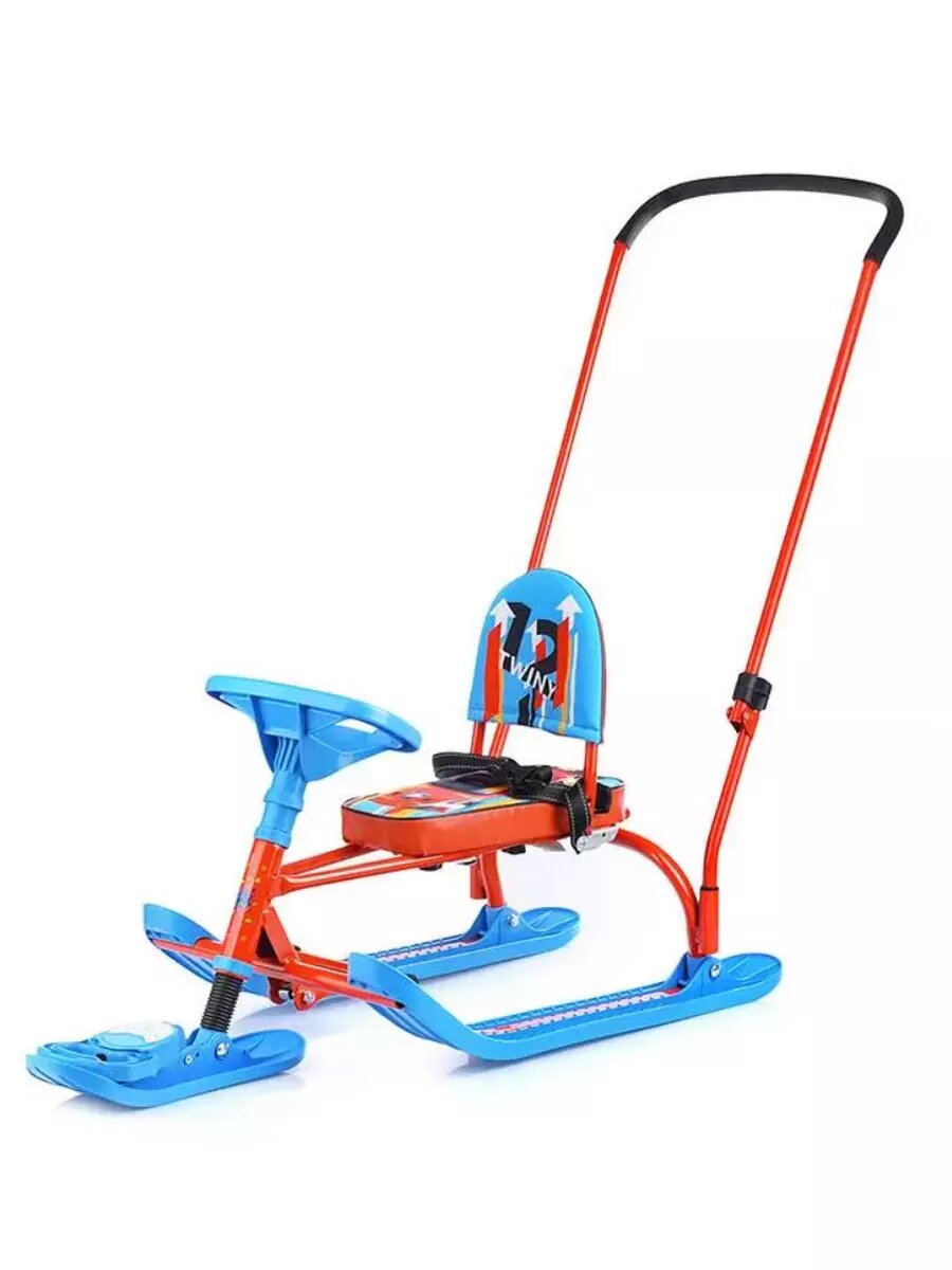 Снегокат детский Ника "Twiny 2+ Sportcar", спинка и ручка, цвет красно-голубой