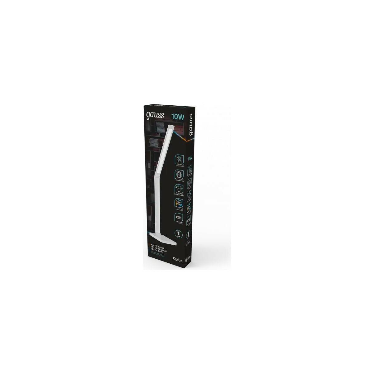 Gauss Светильник настольный Gauss Qplus GTL501 10W 600lm 3000-6000K 170-265V белый диммируемый Qi USB LED