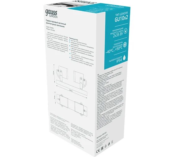 | Дополнительная информация | Светильник фасадный GAUSS Sonata GU10 2х35Вт 240В IP54 черный |