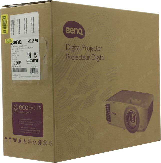 СохранитьПроектор BenQ MH550 DLP, 1920x1080, 3500 AL, 20000:1, 16:10, 1.1X, TR 1.49~1.64, HDMIx2, VGA, White, 2.3 kg интересное: