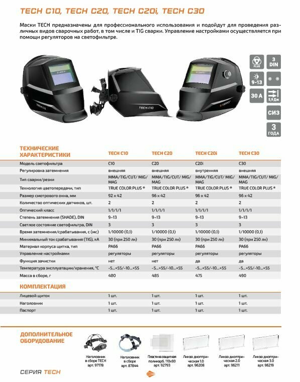 Маска сварочная защитная лицевая (маска сварщика хамелеон ) TECH C10 интересное: