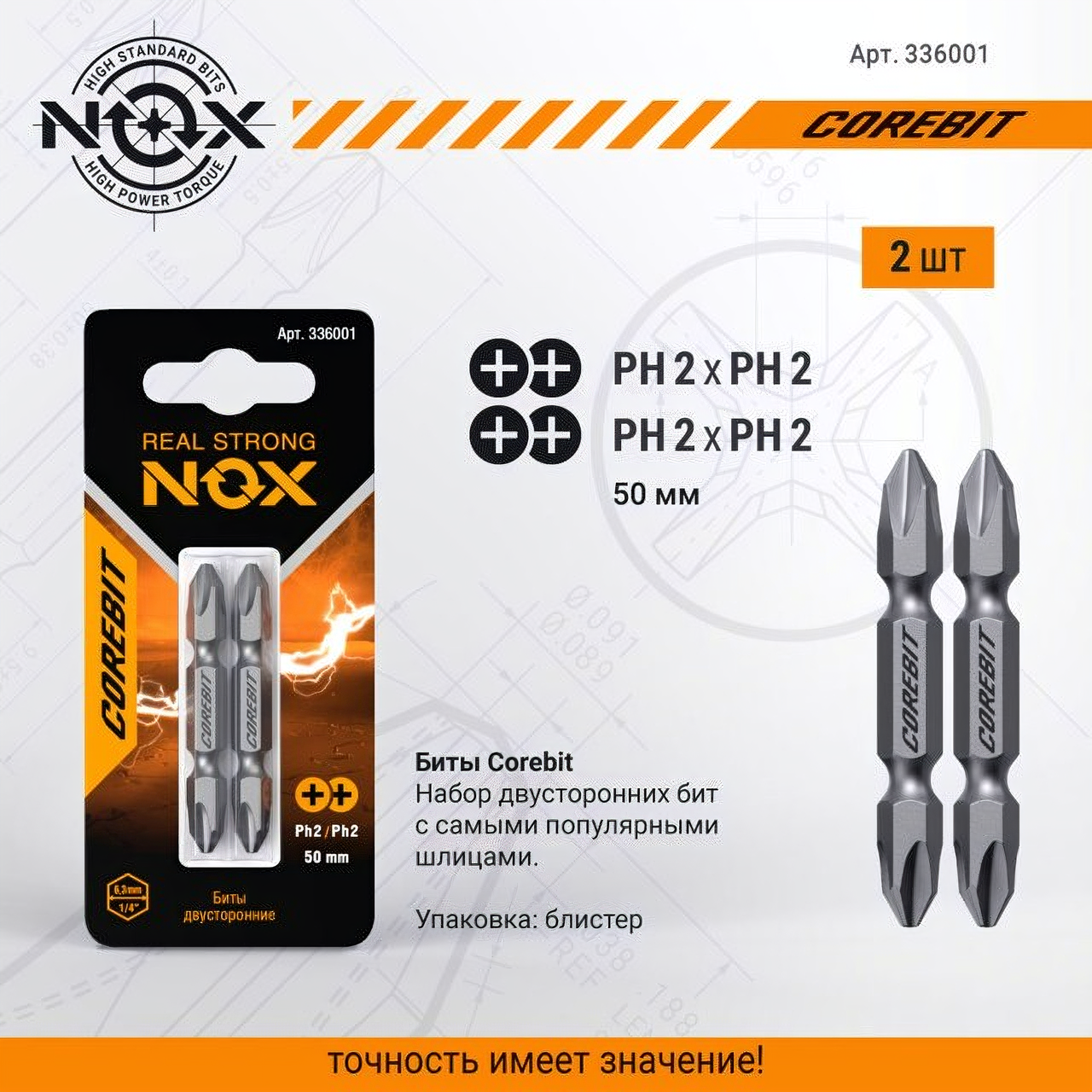 | Дополнительная информация | Бита NOX PH2xPH2 50мм двусторонняя 2шт |