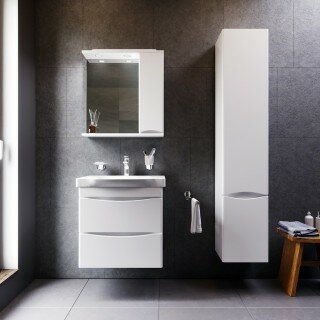 M80MPR0651WG Like, зеркало, частично-зеркальный шкаф, правый, 65 см, с подсветкой, белый, глянец, шт