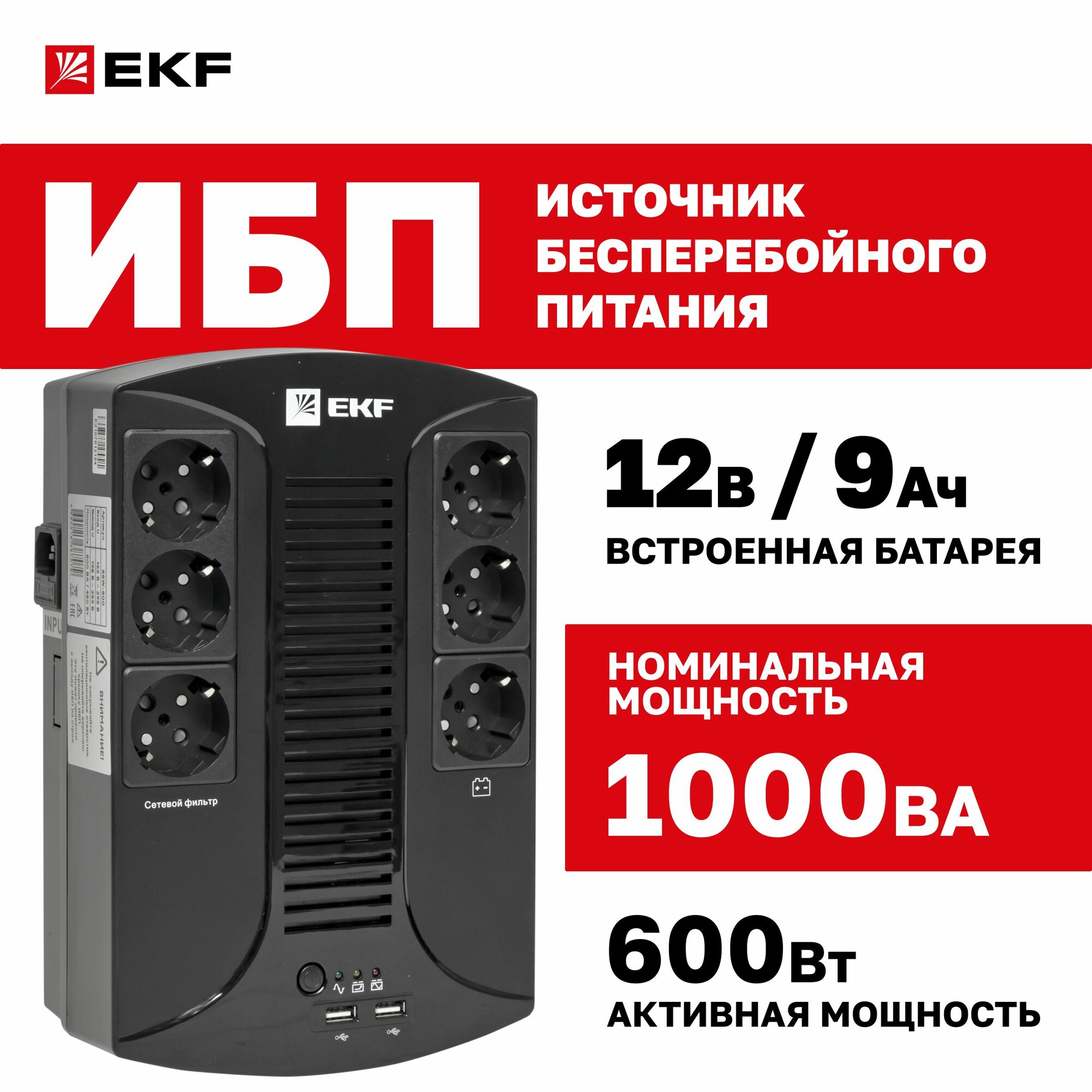 Интерактивный ИБП EKF E-Power Home 1000 ВА PROxima черный 600 Вт
