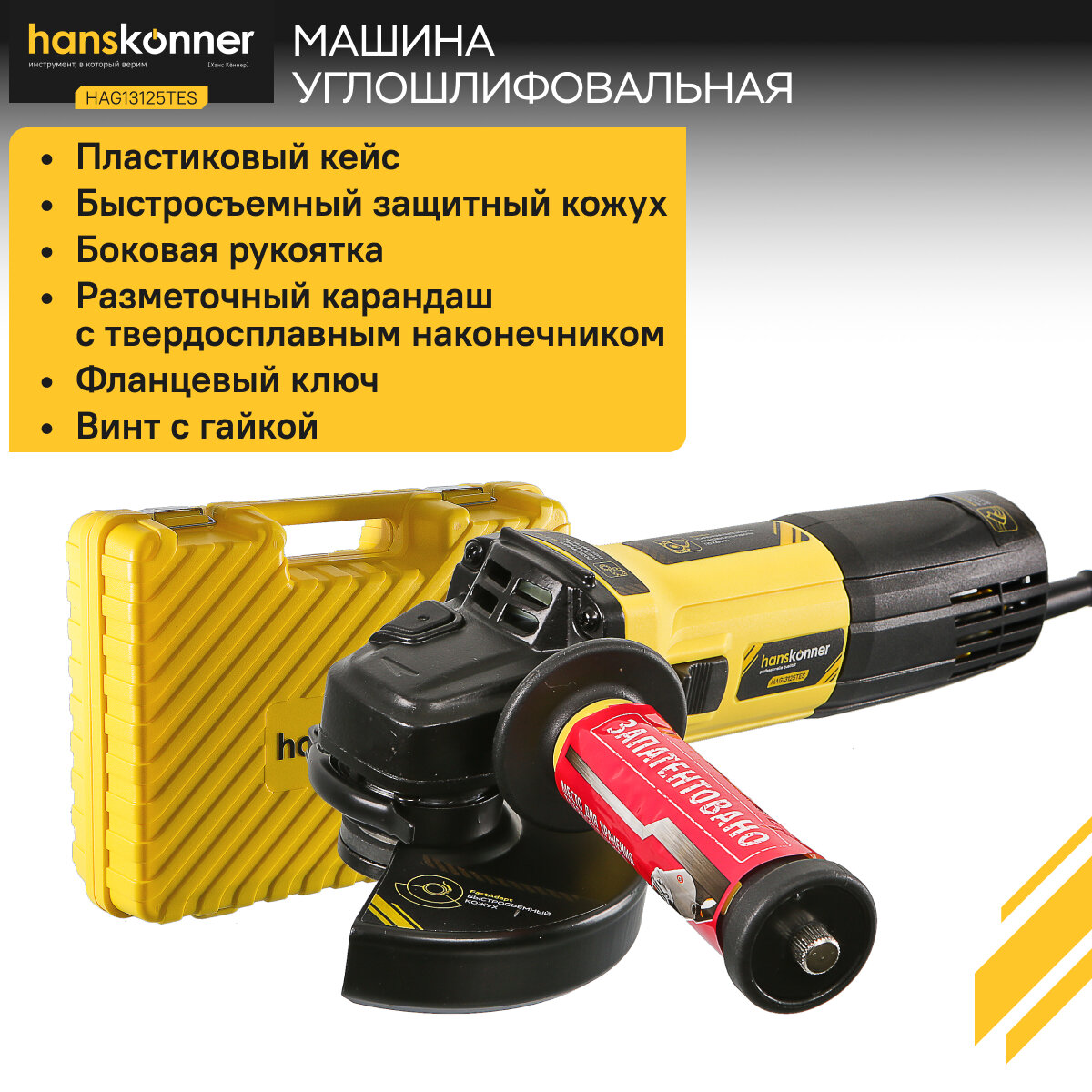 Угловая шлифовальная машина (болгарка) Hanskonner HAG13125TES, кейс