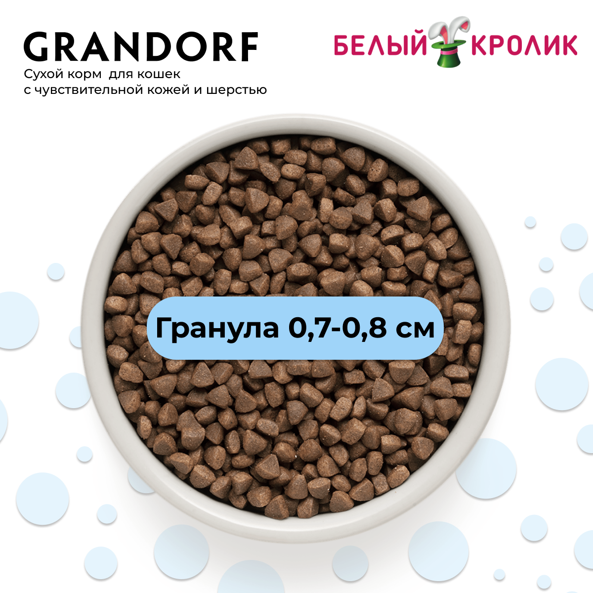 Сухой корм Grandorf забота о коже и шерсти для кошек: белая рыба с индейкой 400г