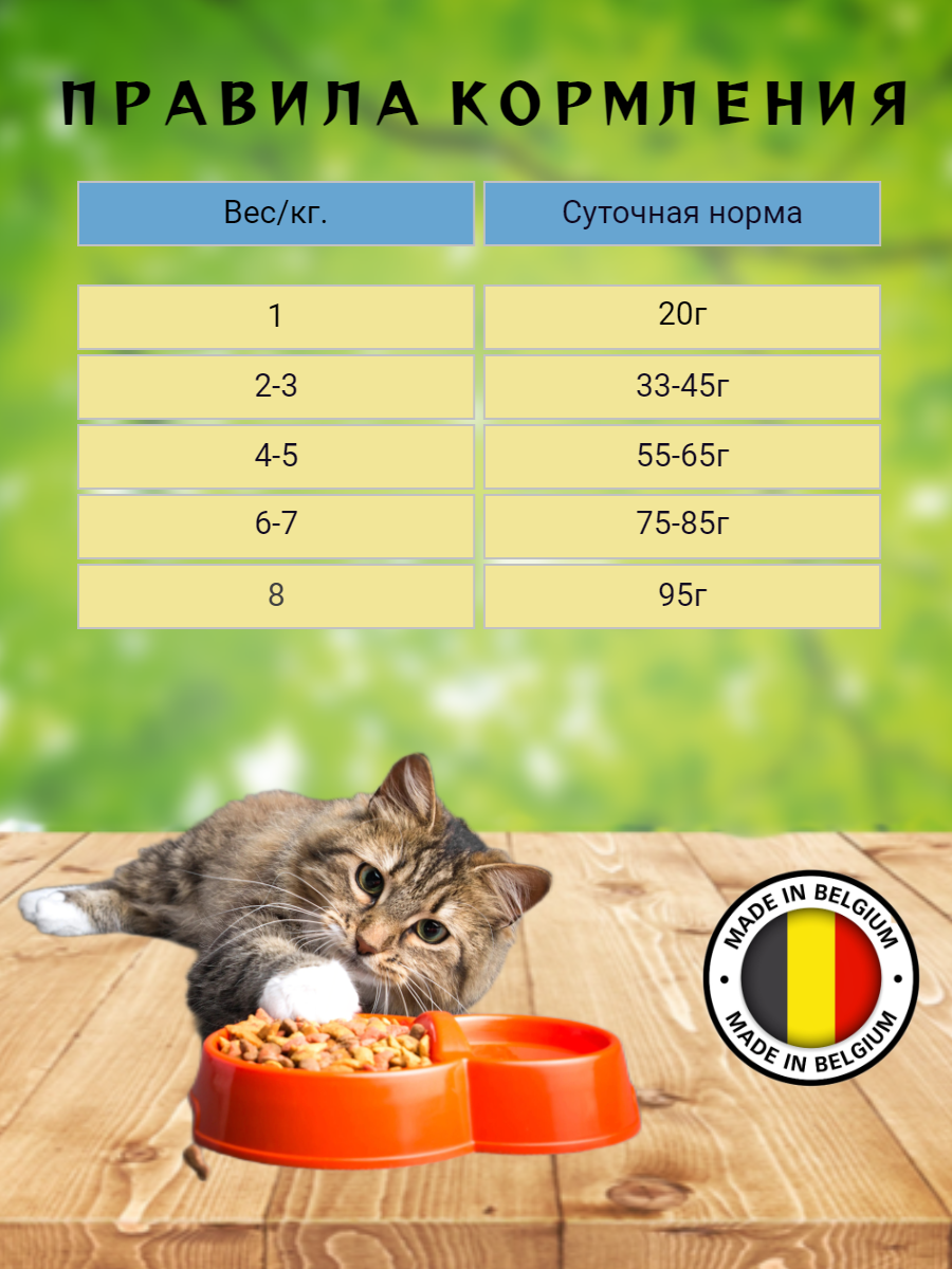 | Особые потребности | гипоаллергенный / для вывода шерсти / для живущих в помещении / для здоровья кожи и блеска шерсти |