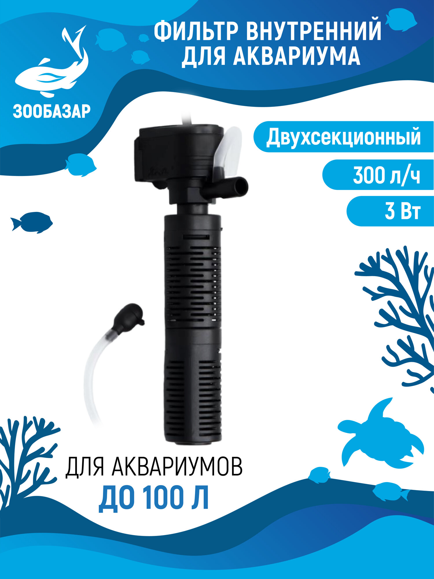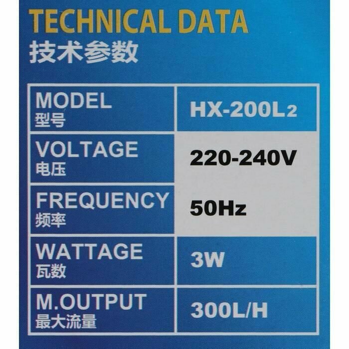 Фильтр внутренний HX-200L2, 300 л/ч, 3 Вт, с двойной фильтрацией