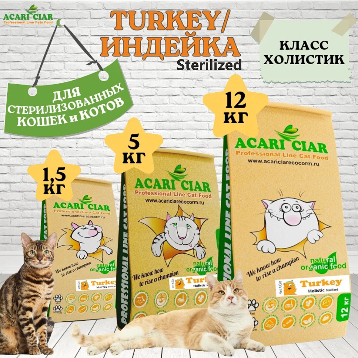 Сухой корм Acari Ciar Holistic для стерилизованных кошек (индейка) 12 кг