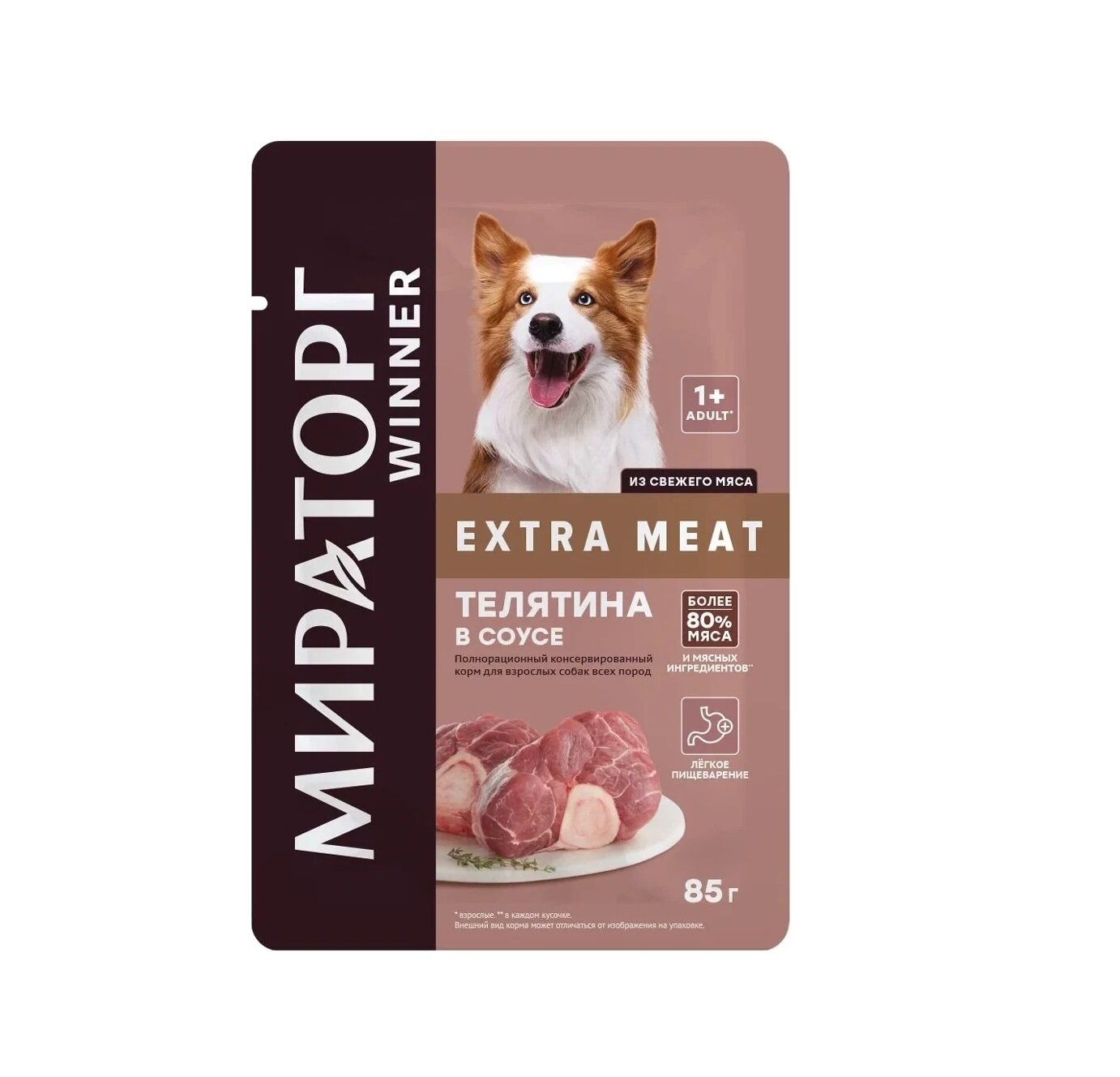 Купить Влажный корм Мираторг Extra Meat для собак с телятиной в соусе 24 шт х 85 г