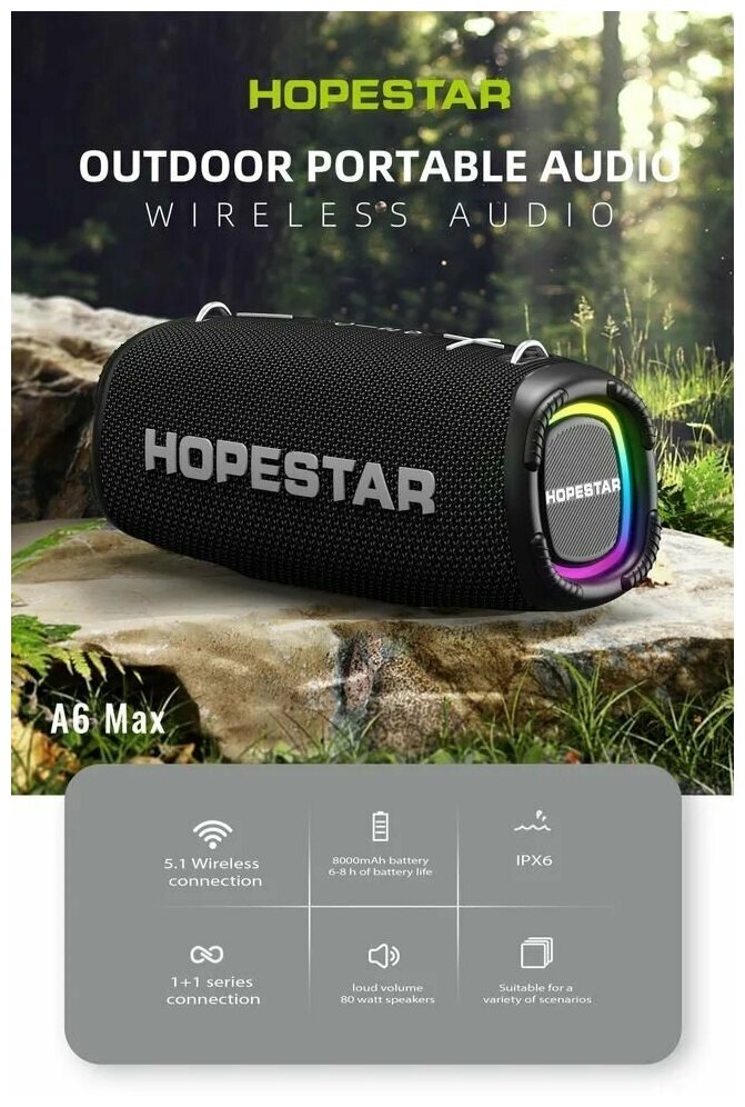 Портативная беспроводная Bluetooth колонка HOPESTAR A6 Max с микрофоном 80Вт/портативная акустика/блютуз колонка (черная)