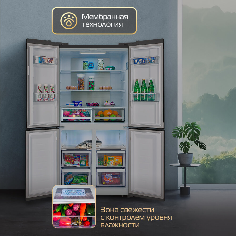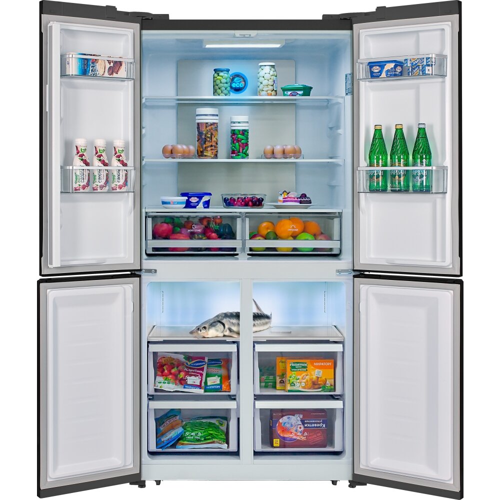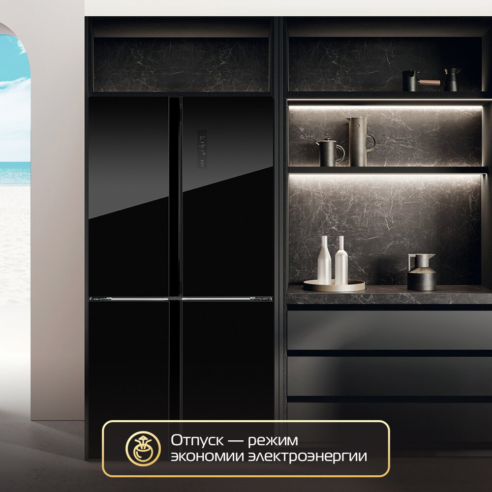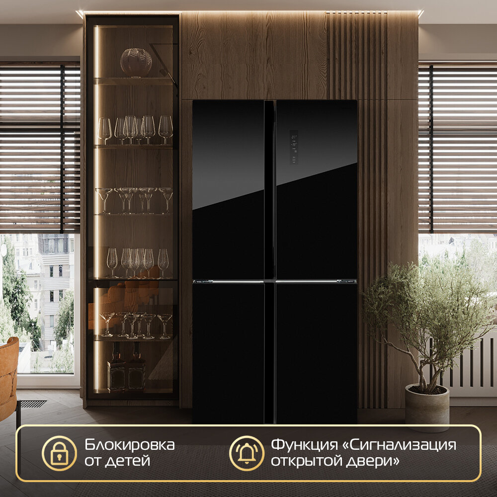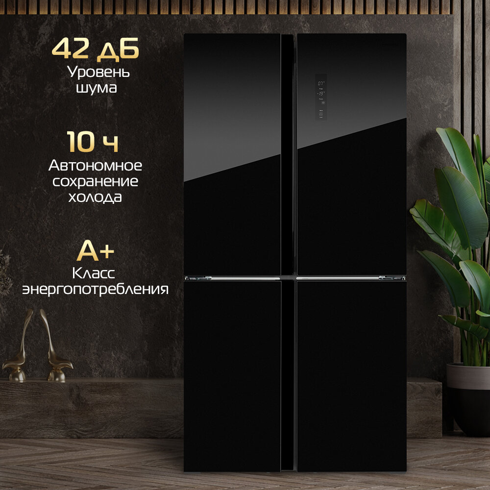 Холодильник HIBERG RFQ-500DX NFGB INVERTER отдельностоящий, 4 двери, 545 л, черное стекло