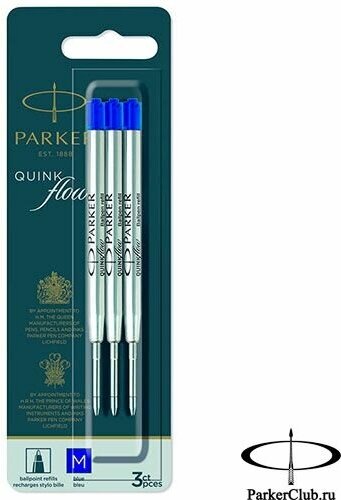 Стержень шариковый PARKER "Quinkflow" комплект 3 металлический 98 мм узел 1 мм блистер синий, 1 шт