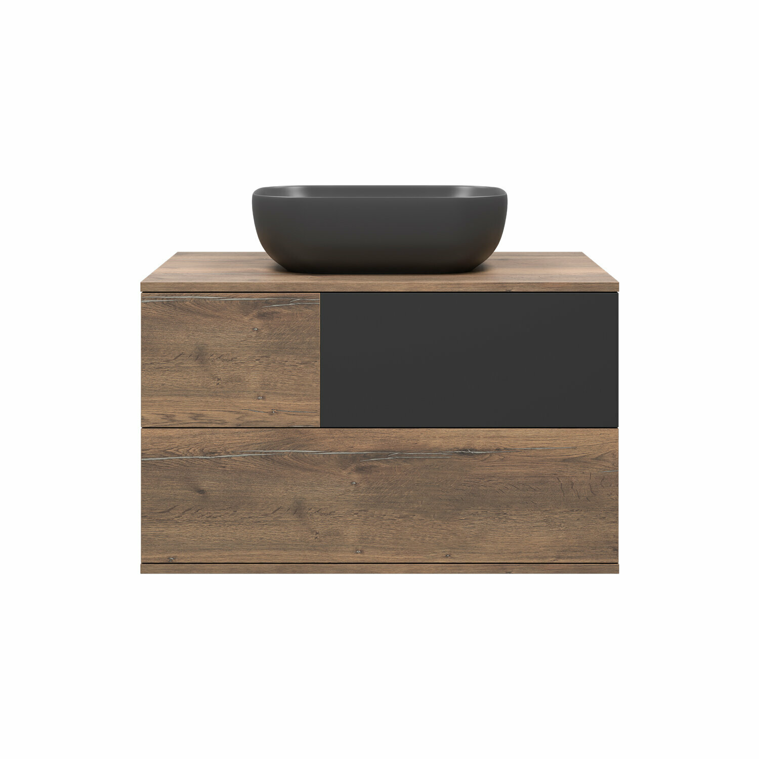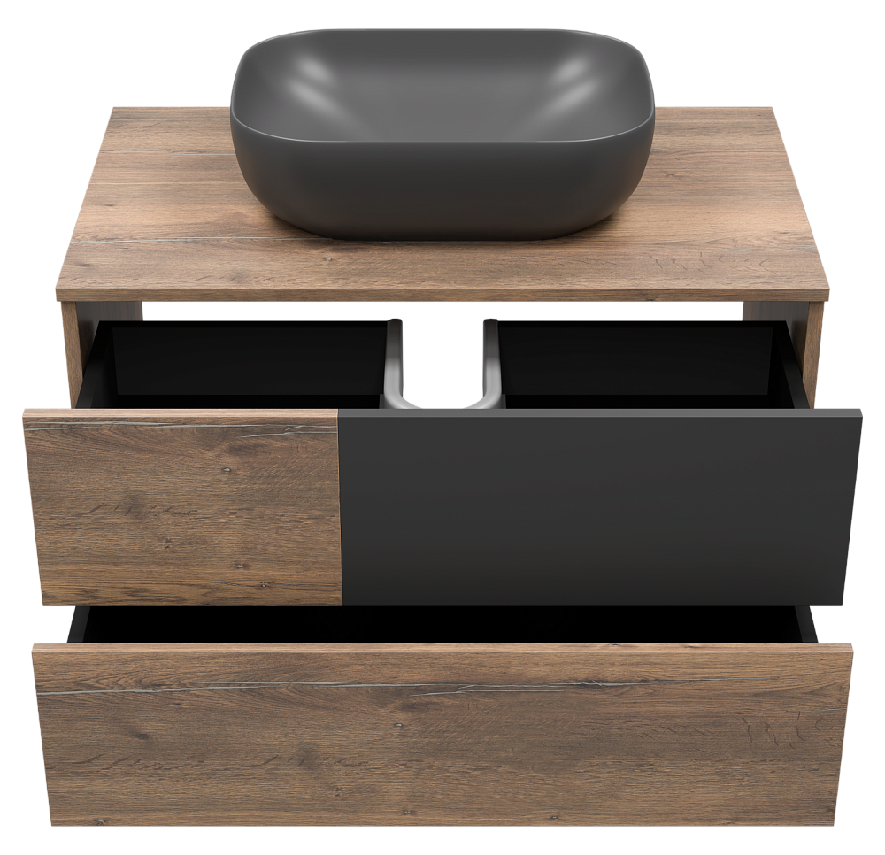 Тумба с раковиной Misty Ива - 80, Графит / Каштан