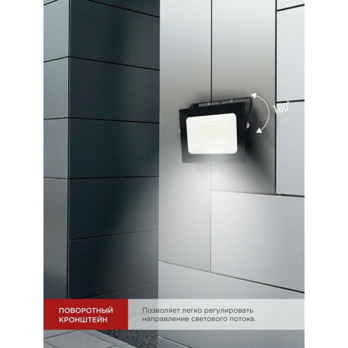 Прожектор светодиодный IN HOME СДО-7, 100 Вт, 230 В, 6500 К, IP 65, черный 9771068