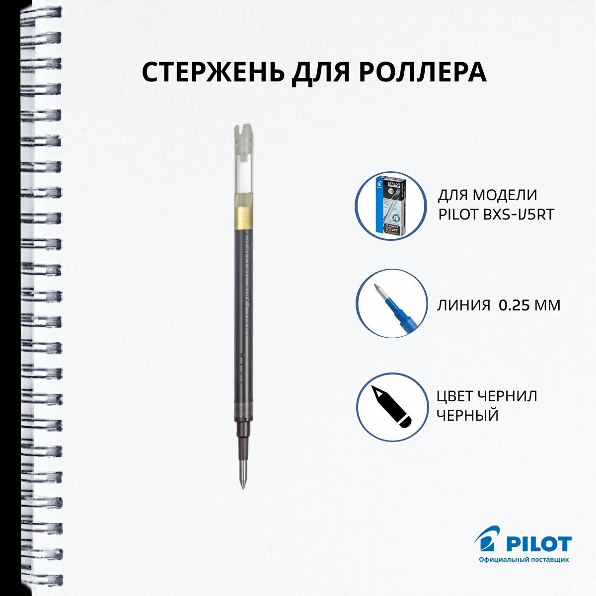 Стержень для роллеров Pilot BXS-V5RT, 111мм (черный, 0.25мм, для ручки Hi-Tecpoint V5 RT) (BXS-V5RT-B), 1шт.