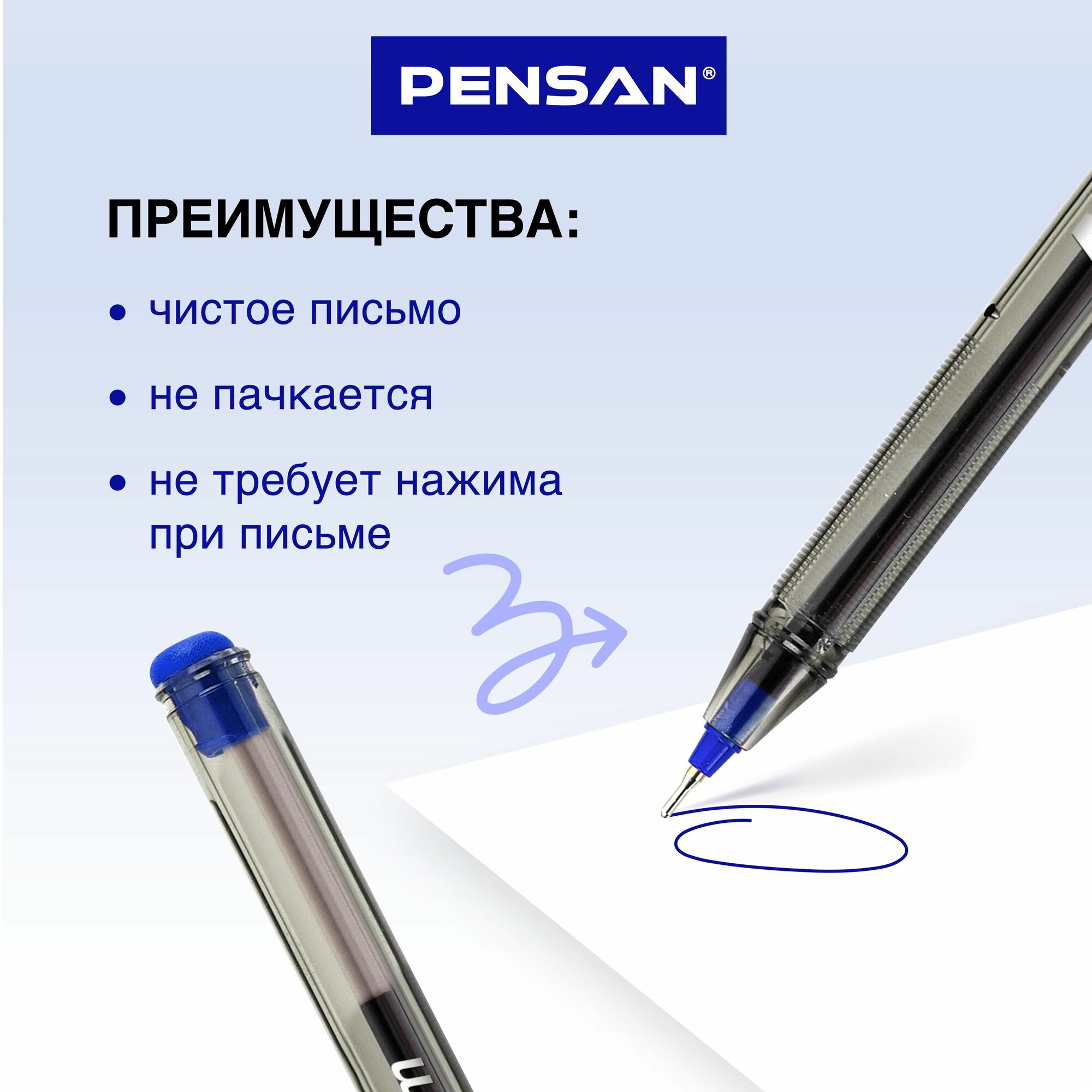 Ручки шариковые синие Pensan, масляные чернила, линия письма 0,8 мм, набор 50 шт