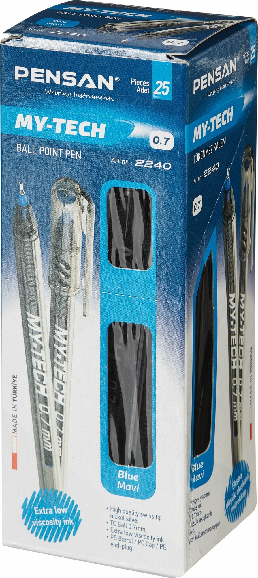 Ручки шариковые синие Pensan, масляные чернила, линия письма 0,35 мм, набор 25 шт