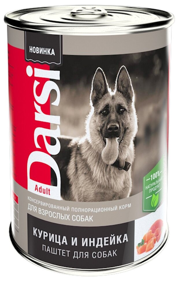 Корм Darsi (паштет) для взрослых собак "Курица и Индейка", 410г x 9 шт