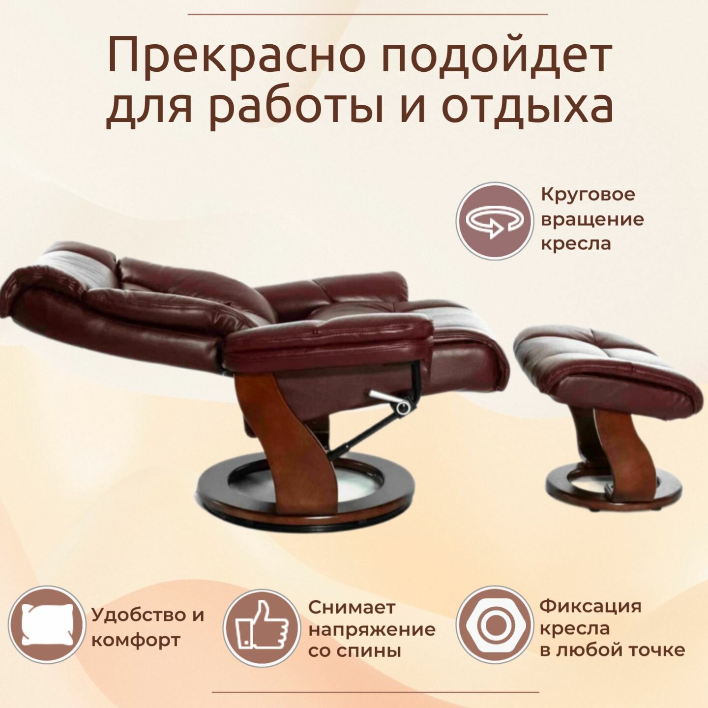 СохранитьКожаное кресло-реклайнер Falto Relax Zuel 7582W, цвет: бордовый интересное: