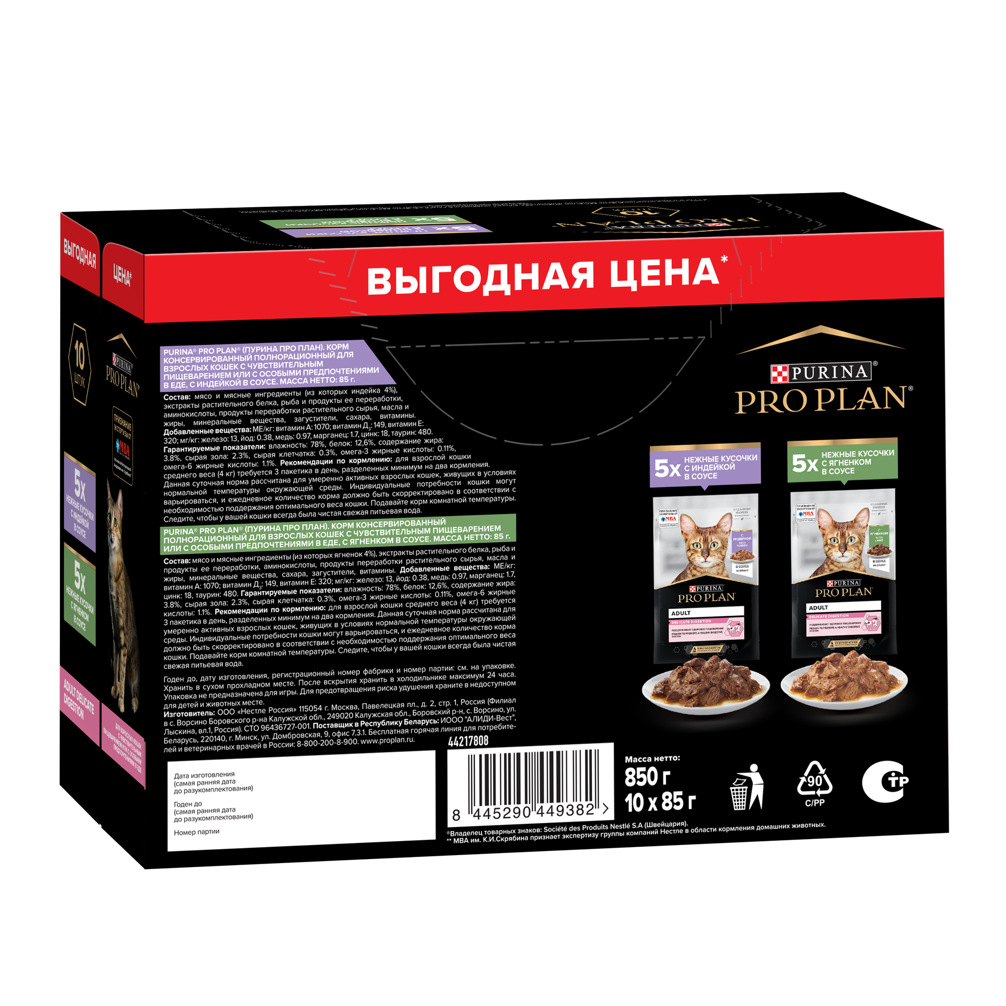 Промопак: Влажный корм Pro Plan Delicate для любых кошек с чувствительным пищеварением (индейка в соусе 5шт, ягненок в соусе 5шт) 850гр интересное:
