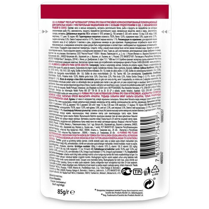 PURINA Pro Plan NutriSavour Delicate Пауч д/кошек Чувствит пищевар с Океанической рыбой в соусе 85 г интересное: