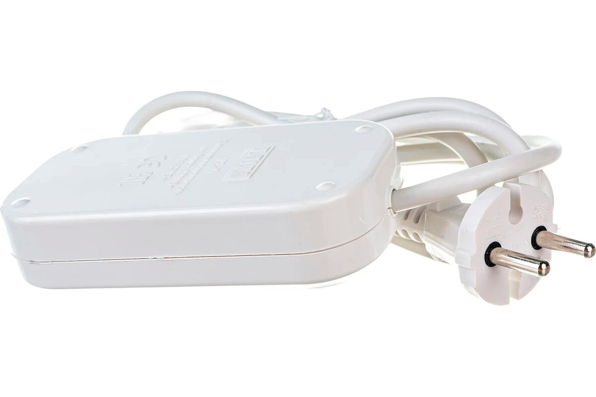 Удлинитель LUX У2-О, 2 розетки, б/з, 10А / 2200 Вт белый 10 м 0.75 м² 2