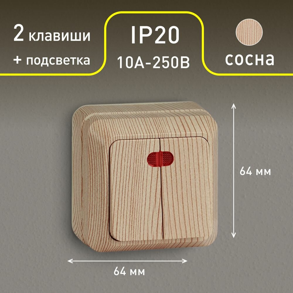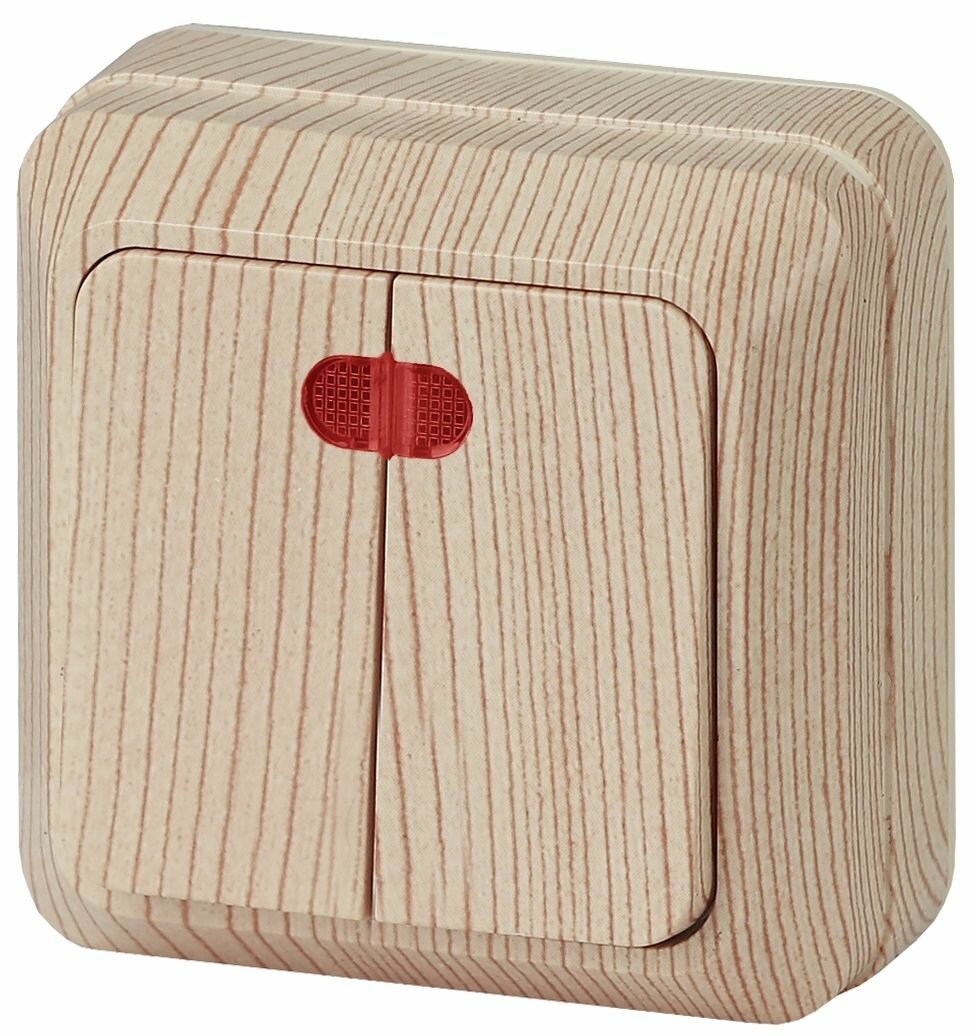 Купить Выключатель Intro Quadro 2-105-11 двухклавишный с подсветкой 10А-250В IP20 ОУ сосна