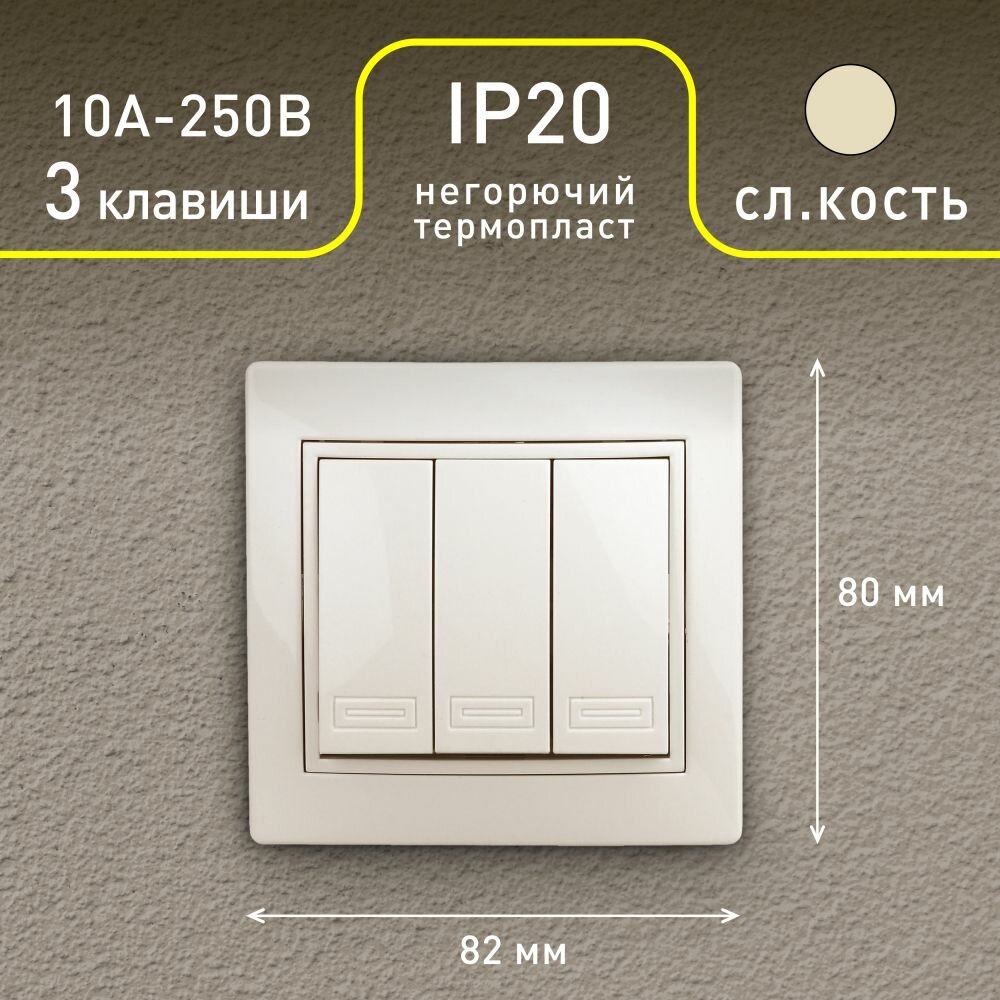 Купить Выключатель Intro Plano 1-106-02 тройной 10А-250В IP20 СУ слоновая кость