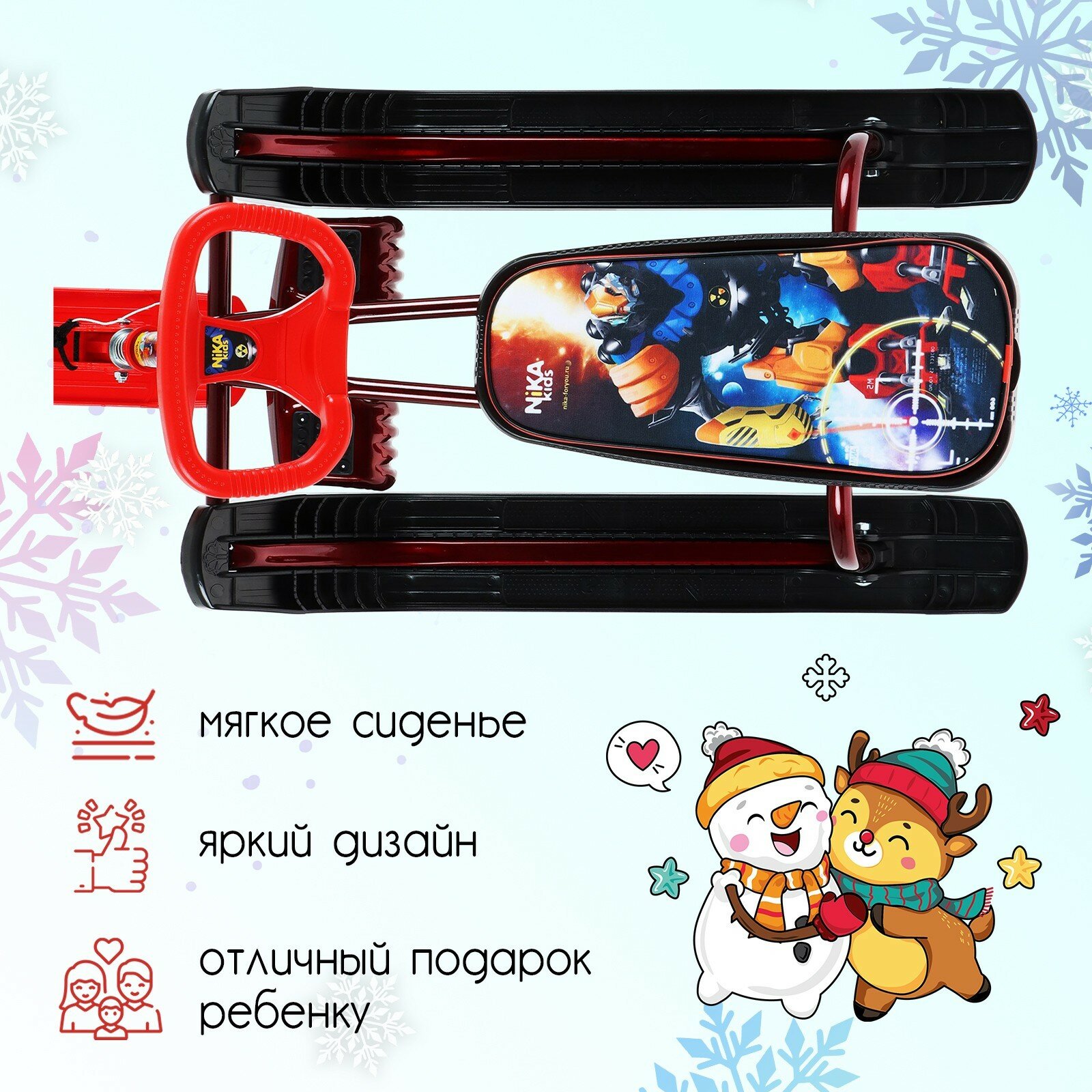 Снегокат детский NIKA Тимка спорт 2+, галактический робот", красный, ТС2+/ГР