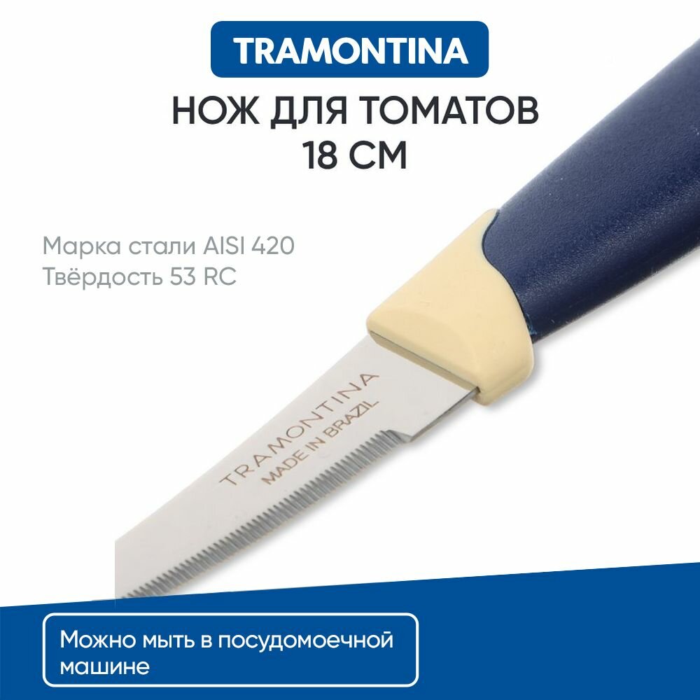 Tramontina Multicolor Нож для томатов 8см, блистер, 2шт