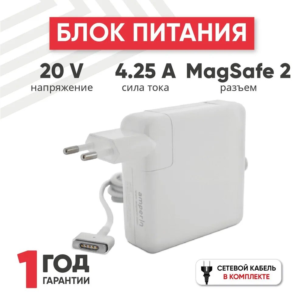 Блок питания (сетевой адаптер) Amperin AI-AP285 для ноутбуков Apple 20V 4.25A 85W MagSafe 2 арт 013300