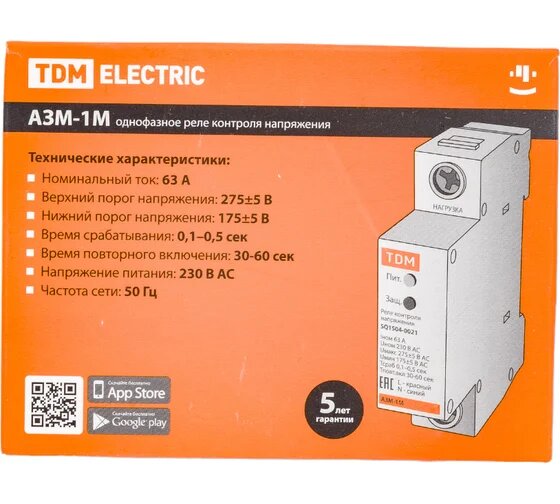 Реле напряжения 1ф АЗМ-1М 1-модуль 63А-230В TDM (TDM) SQ1504-0021