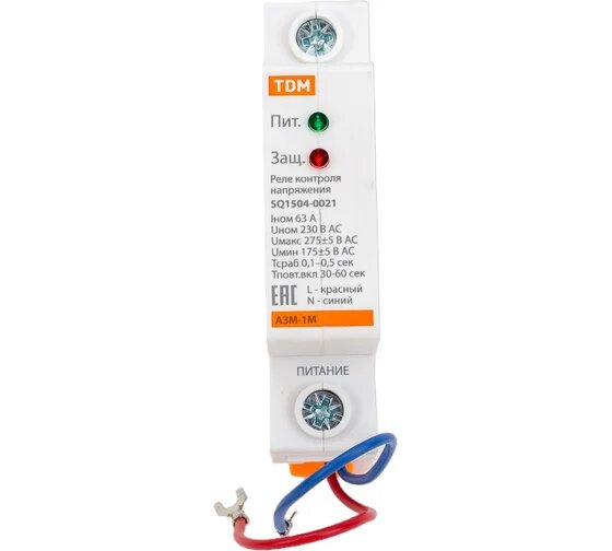 Реле напряжения 1ф серии АЗМ 1-модуль 63А-220В TDM SQ1504-0021 (1 шт.)