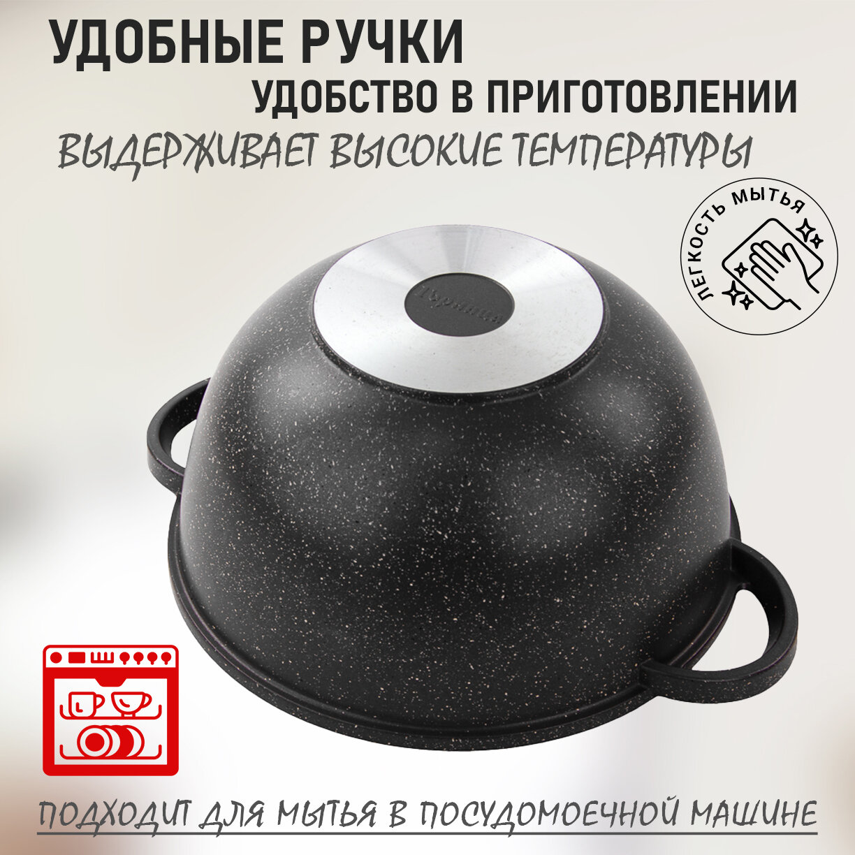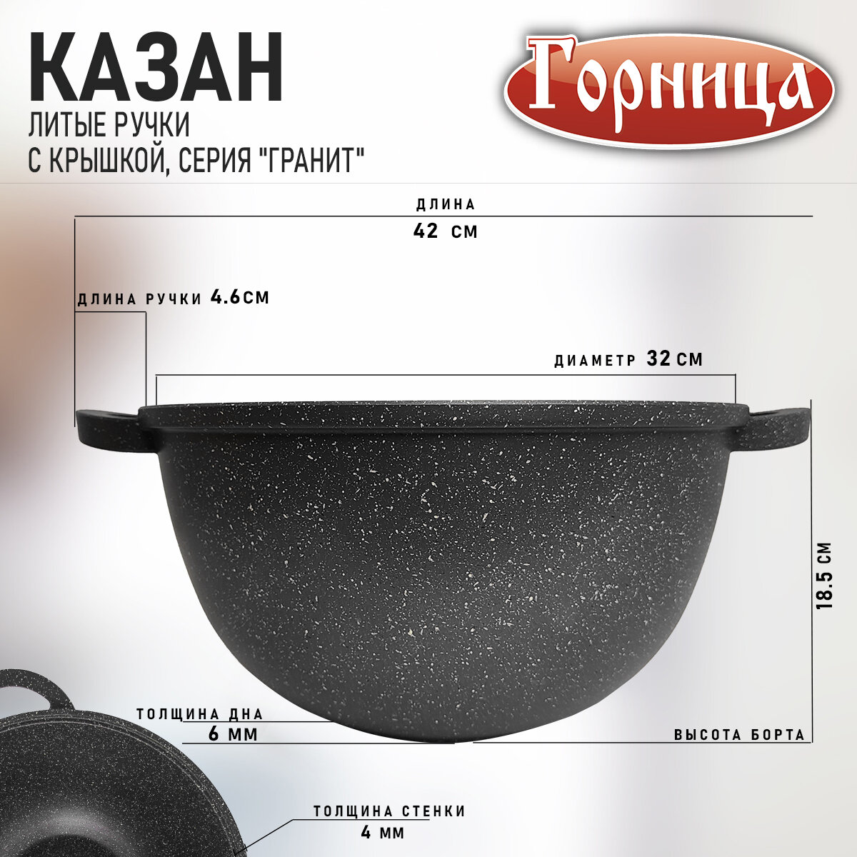 Казан серия "Гранит" объем 10 литров диаметр 32 см высота 18,5 см литые ручки с крышкой, подарочная упаковка